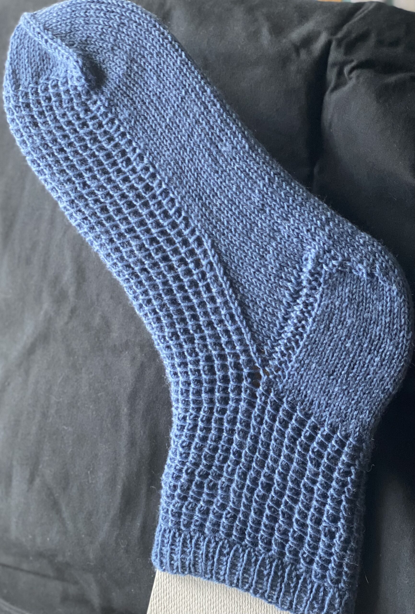 Sockan är stickad i ett 4tr.garn ca 425m/hg. 75% merinolammull , 25% polyamid